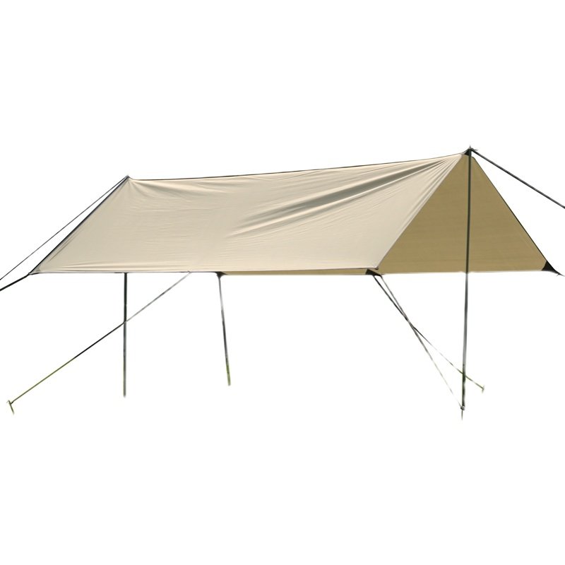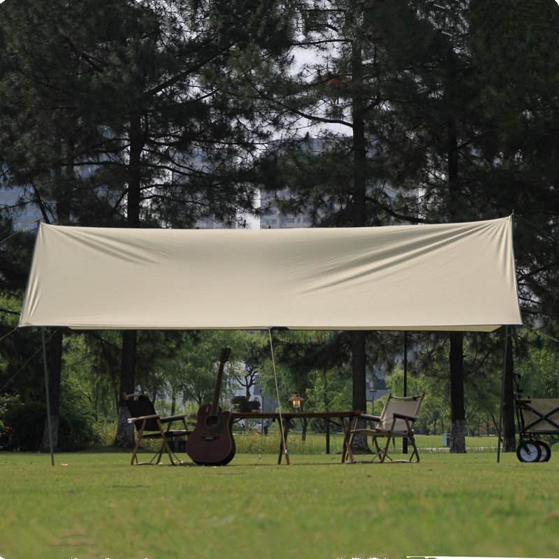 公園や広場での集まりに最適な大型タープです。 長方形の広い面積で複数の家族やグループをしっかりと日差しから守ります。 ロープとポールでしっかりと張れる構造で、安定した設営が可能です。 キャンプやピクニック、野外イベントなど様々な場面で活躍するタープで、開放的な屋外空間を快適に演出します。 大型サイズならではのゆとりある居住空間を提供し、家族団らんの時間をより豊かにします。