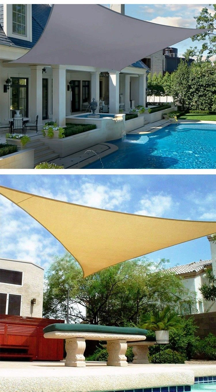 庭やテラスに設置できる三角形のタープです。 遮光性能に優れた生地を使用し、強い日差しから快適な日陰空間を作り出します。 角部分には取り付け用の金具が付いており、柱や壁に簡単に設置可能です。 屋外での食事やくつろぎの時間を涼しく快適に過ごせる実用的なアイテムで、庭先のテーブル上に設置すれば紫外線対策にも効果的です。 耐久性のある素材で長期間の使用にも対応します。