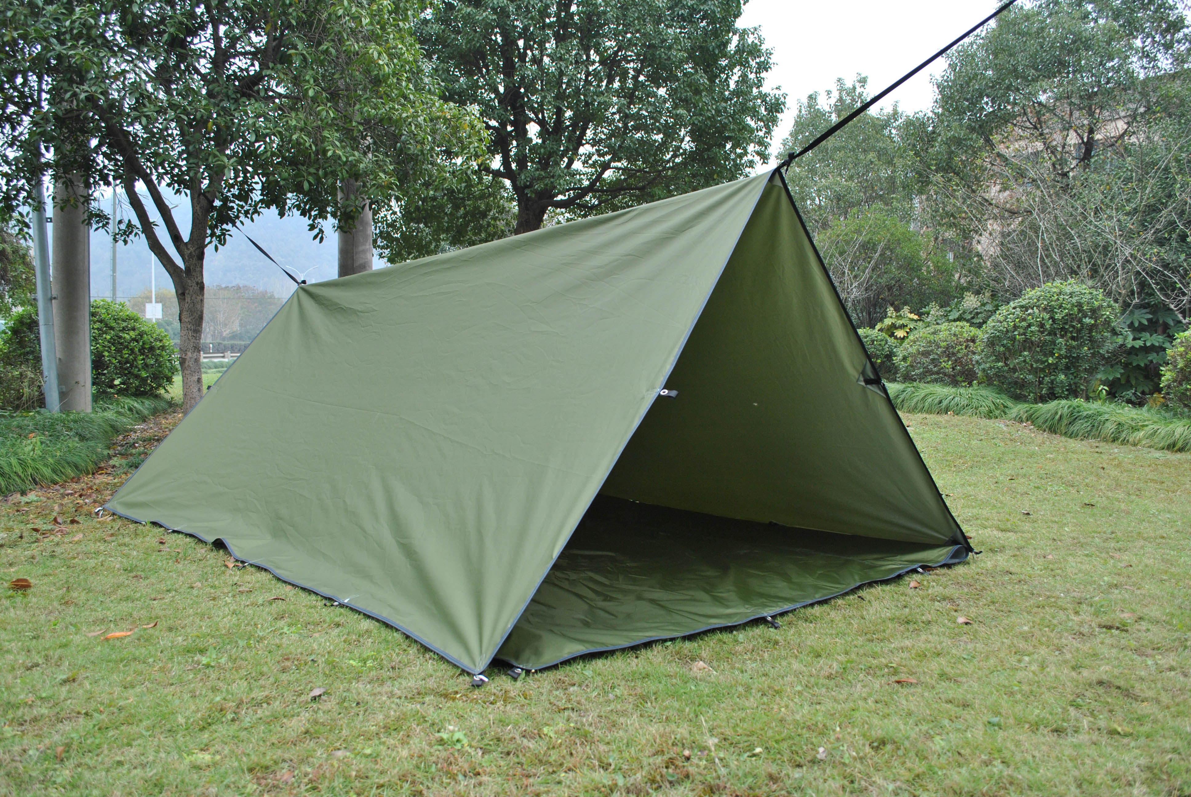 野外活動に最適な三角形設営タイプのタープです。