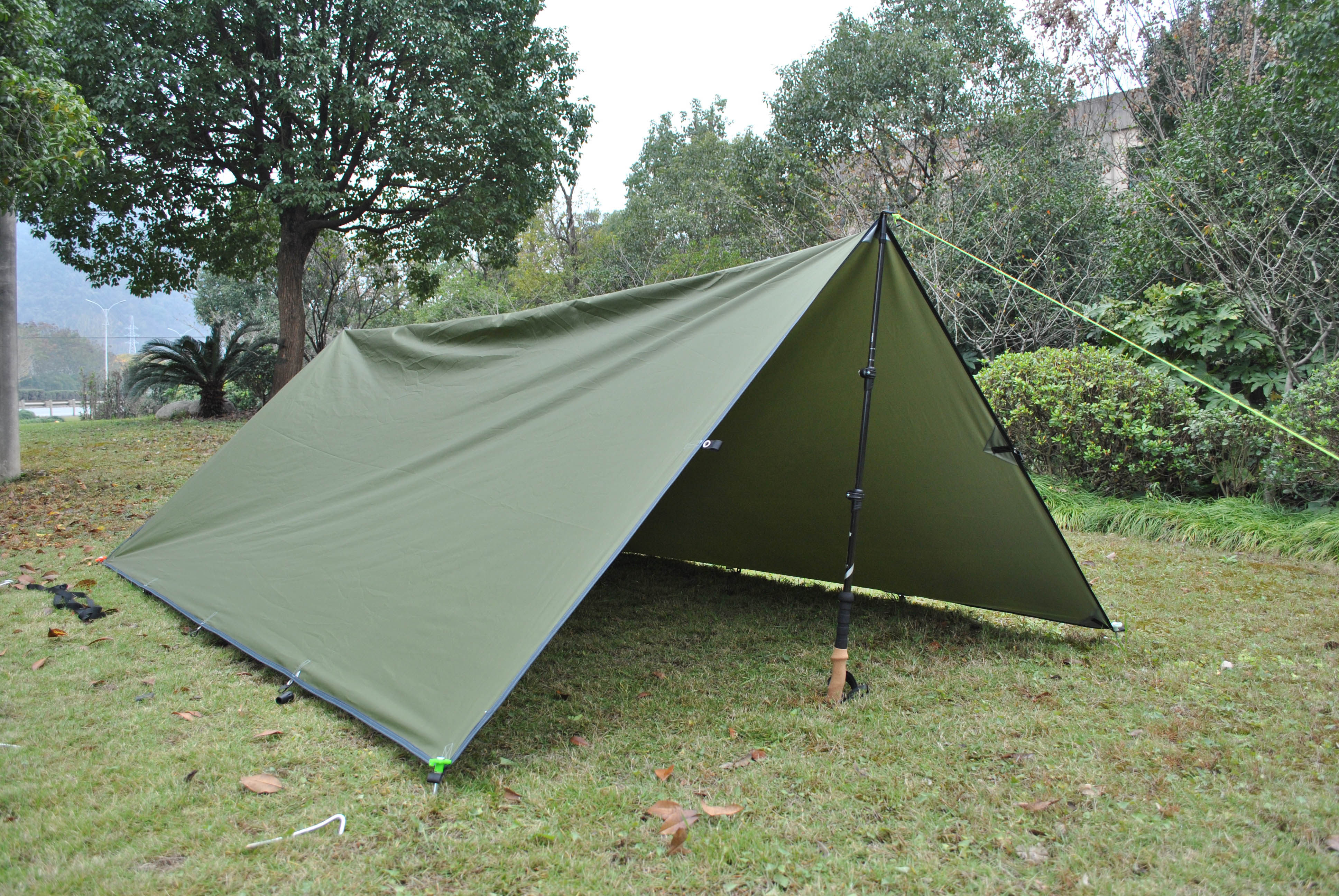 調節可能なポールとロープ付きで、様々な地形に対応可能です。