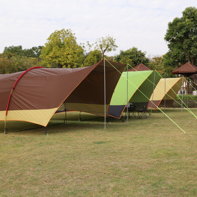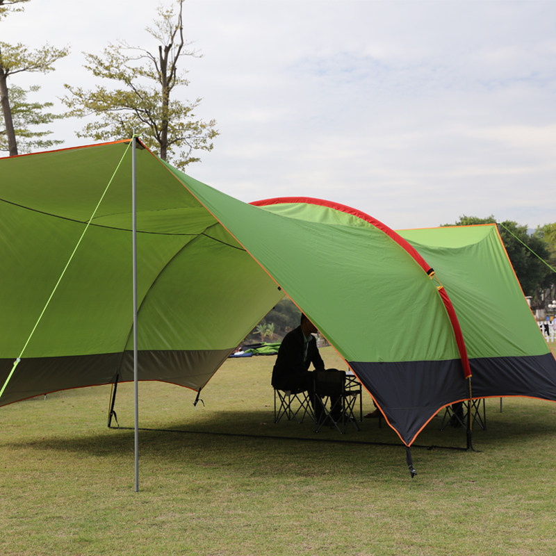広々とした空間を確保できる大型タープで、家族や仲間との野外活動に最適です。