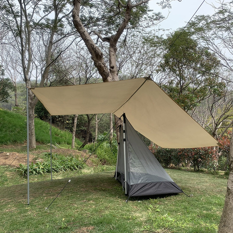 六角形の広々としたデザインで、テントの上部に設置することで強い日差しや雨から居住空間をしっかり守ります。