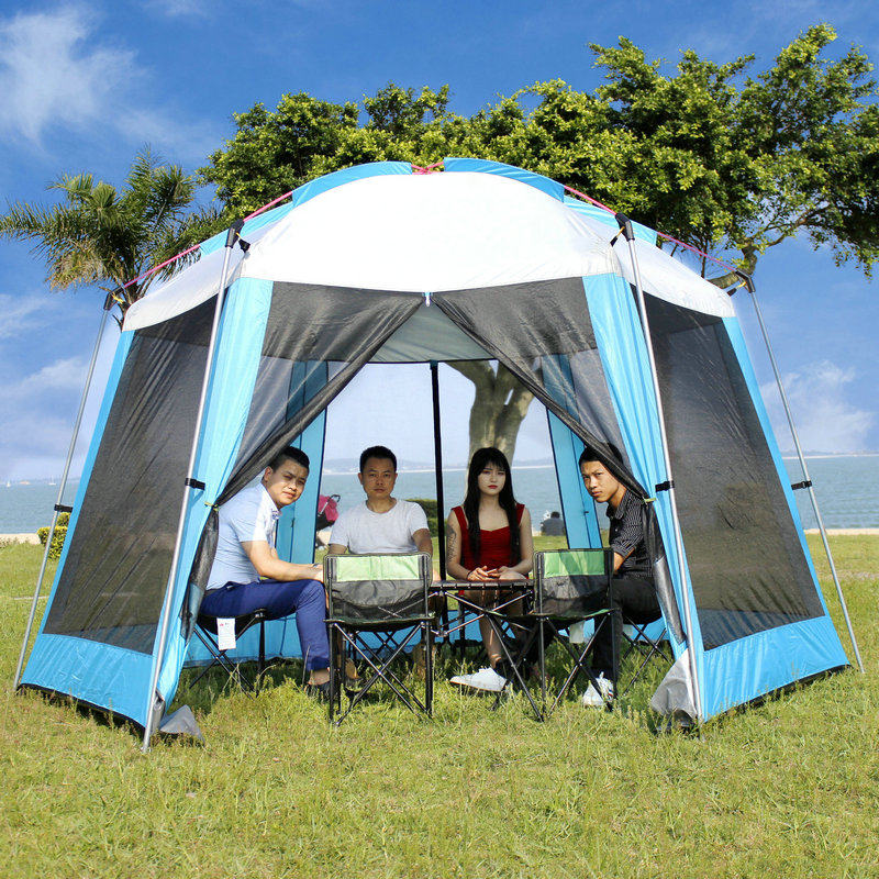 広々とした空間は家族や仲間との食事や団らんに最適で、タープとしての日除け機能も抜群です。