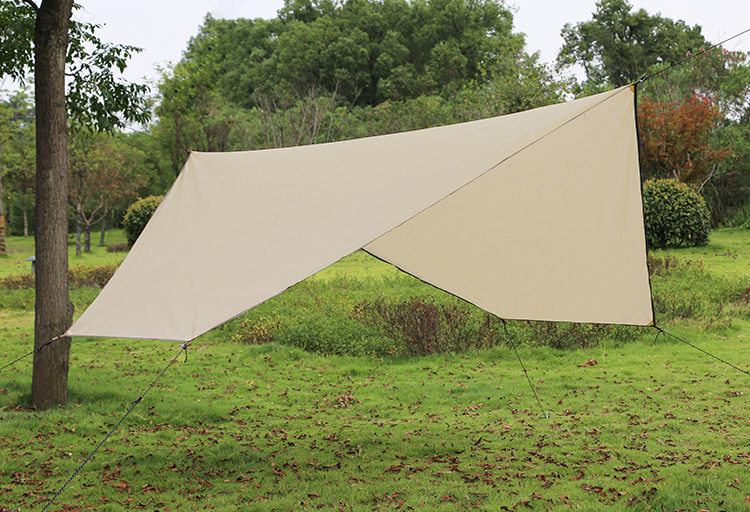 木やポールに固定できる多彩な張り方が可能で、キャンプやピクニックなど様々なアウトドアシーンで活躍します。