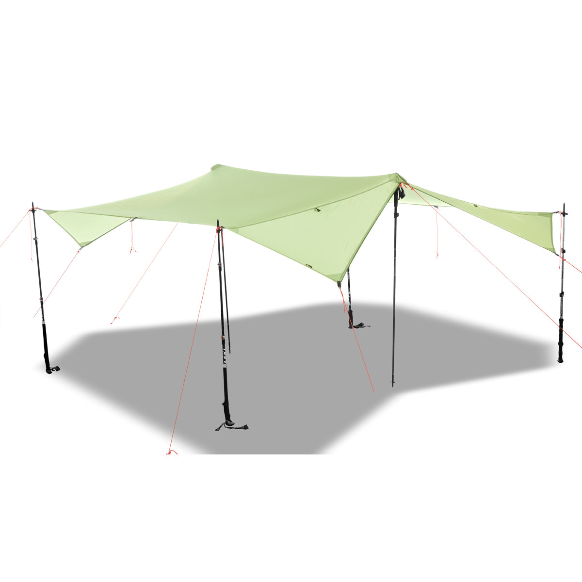 広々とした空間を確保できるヘキサタープです。 六角形の美しいデザインで日差しや雨をしっかり防ぎ、快適な屋外空間を演出します。 軽量で持ち運びやすく、設営も簡単なので初心者から上級者まで幅広く使えるタープです。 ポールとロープで安定した張りを実現し、家族や仲間との野外活動を快適にサポートします。 自然の中でゆったりとした時間を過ごせる多用途タープとして活躍します。