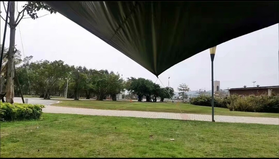 複数のポールとロープで安定した設営が可能で、家族や仲間との野外活動に最適な空間を提供します。